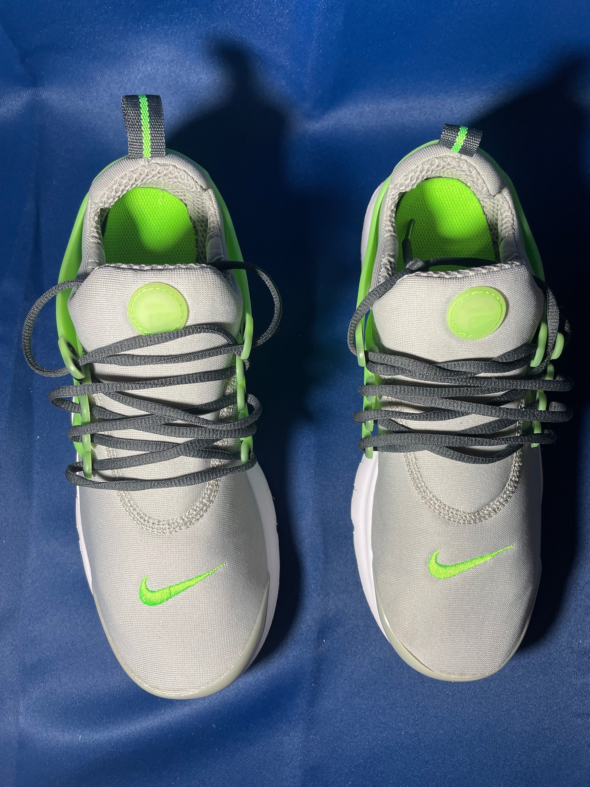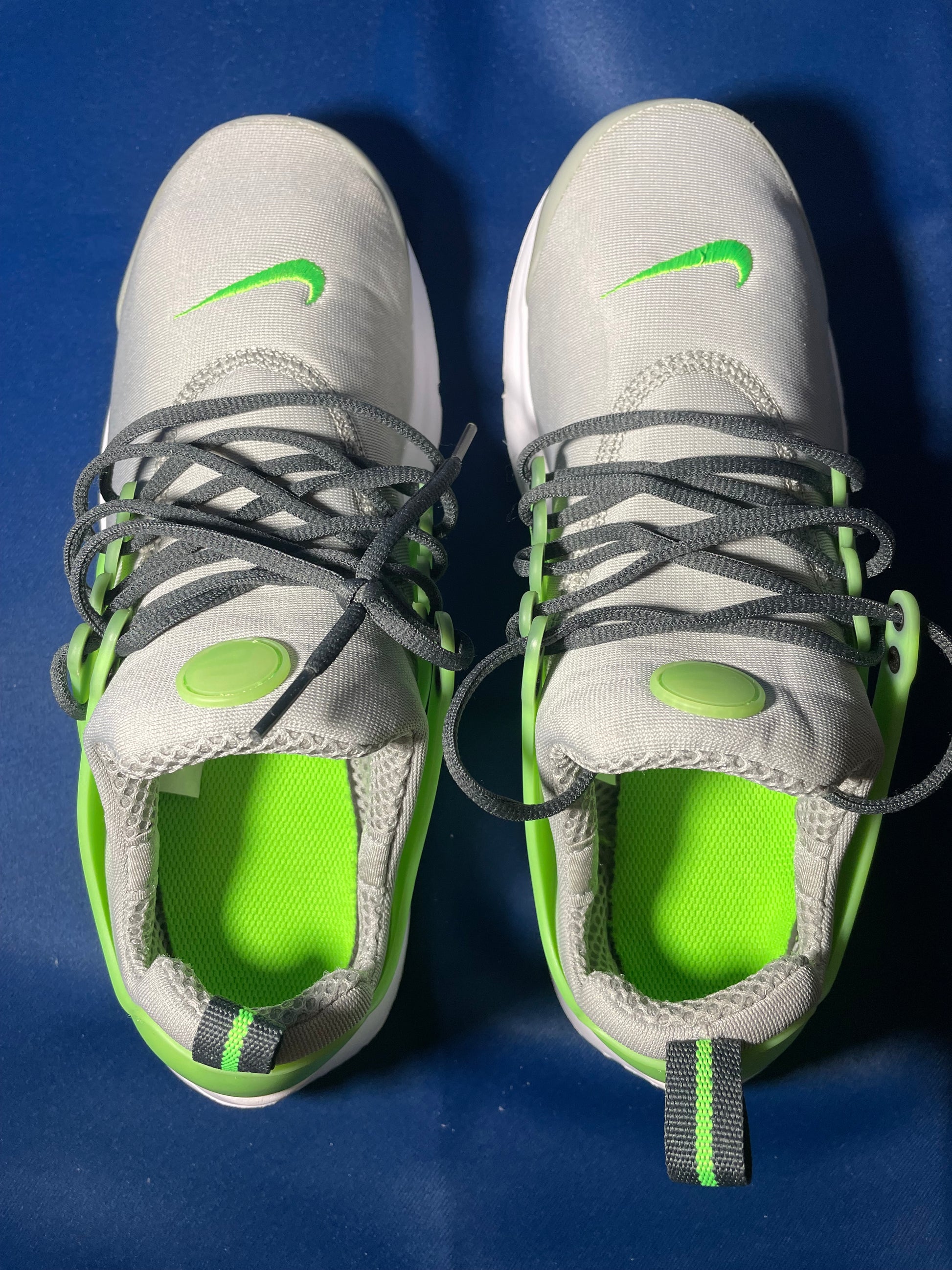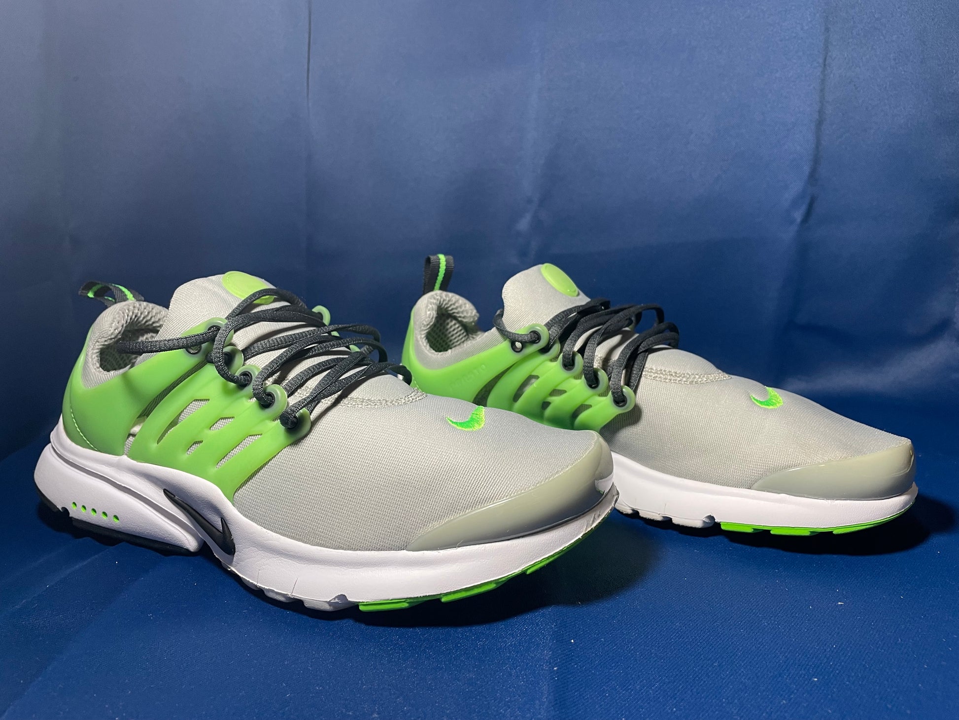 7Y Nike Presto GS 'Light Smoke Grey Green Strike' sneaker! ( NO BOX!! ) These sneakers look pretty New!! You can tell someone possibly wore them a few times but these shoes are very clean! No marks scuffs or anything check out the pictures. Thank you |
